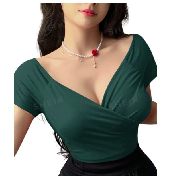 DAZY Blusa de Mujer manga corta con cinturón de unicolor casual para verano